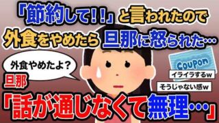 修羅場 【2ch報告者キチ】「「節約して!!」と言われたので外食をやめたら旦那に怒られた…」→旦那「話が通じなくて無理…」【ゆっくり解説】