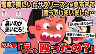 修羅場 【報告者キチ】電車で隣にいたサラリーマンが臭すぎて殴ってしまいました →スレ民「え、殴ったの?」 姉妹ニュースサイト姉妹ニュースサイト2怖い話動画サイトお料理動画サイト修羅場ラバンバ面白動画サイトこんにちは!「2ch速報パンダ」へようこそ🐼このチャンネルでは、2ちゃんねる(5ch)の🔥 スカッとする話(因果応報)💔 修羅場・浮気・離婚🤣... 2026.03.13 修羅場
