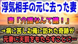 修羅場 【修羅場】妻「介護なんて嫌!」浮気相手の元に去った妻。→病に苦しむ俺に訪れた奇跡が元妻に天罰をもたらすことに…