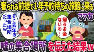 キチママ 【2chキチママ】奢られる前提で1年予約待ちの温泉旅行に同行する非常識DQNママ友→噓の集合場所教えて異国に放置してやった結果ww【2chスカッとスレ・ゆっくり解説】