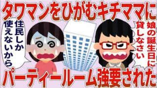 キチママ 【総集編】キチママ「パーティールーム貸して!」私「住民しか使えないって」→タワマンをひがむキチママにパーティールームを強要された【2chゆっくり解説】